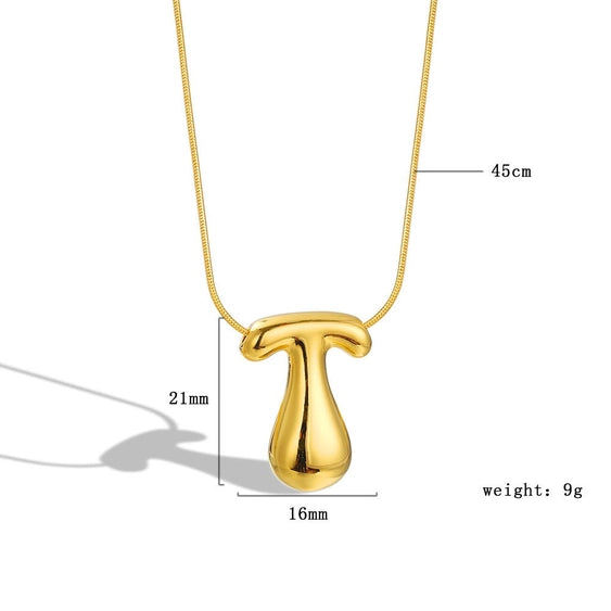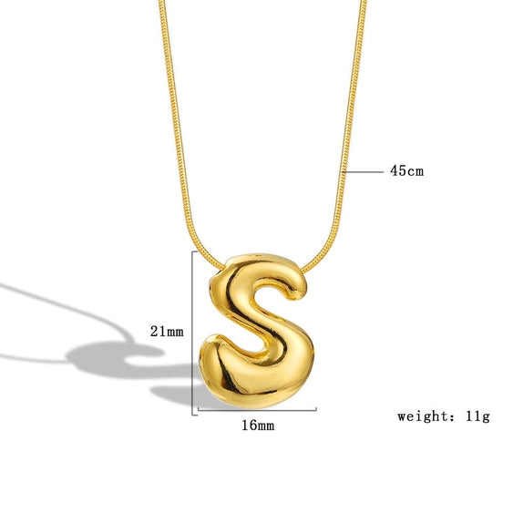 Complete your look with a sophisticated, unique touch - this trendy Bubble Letter Initial Necklace made of 18k gold. Its chic and elegant design features a plated bubble letter pendant creating a trendy and eye-catching finish. Show your style and class with this exclusive, unique statement necklace.