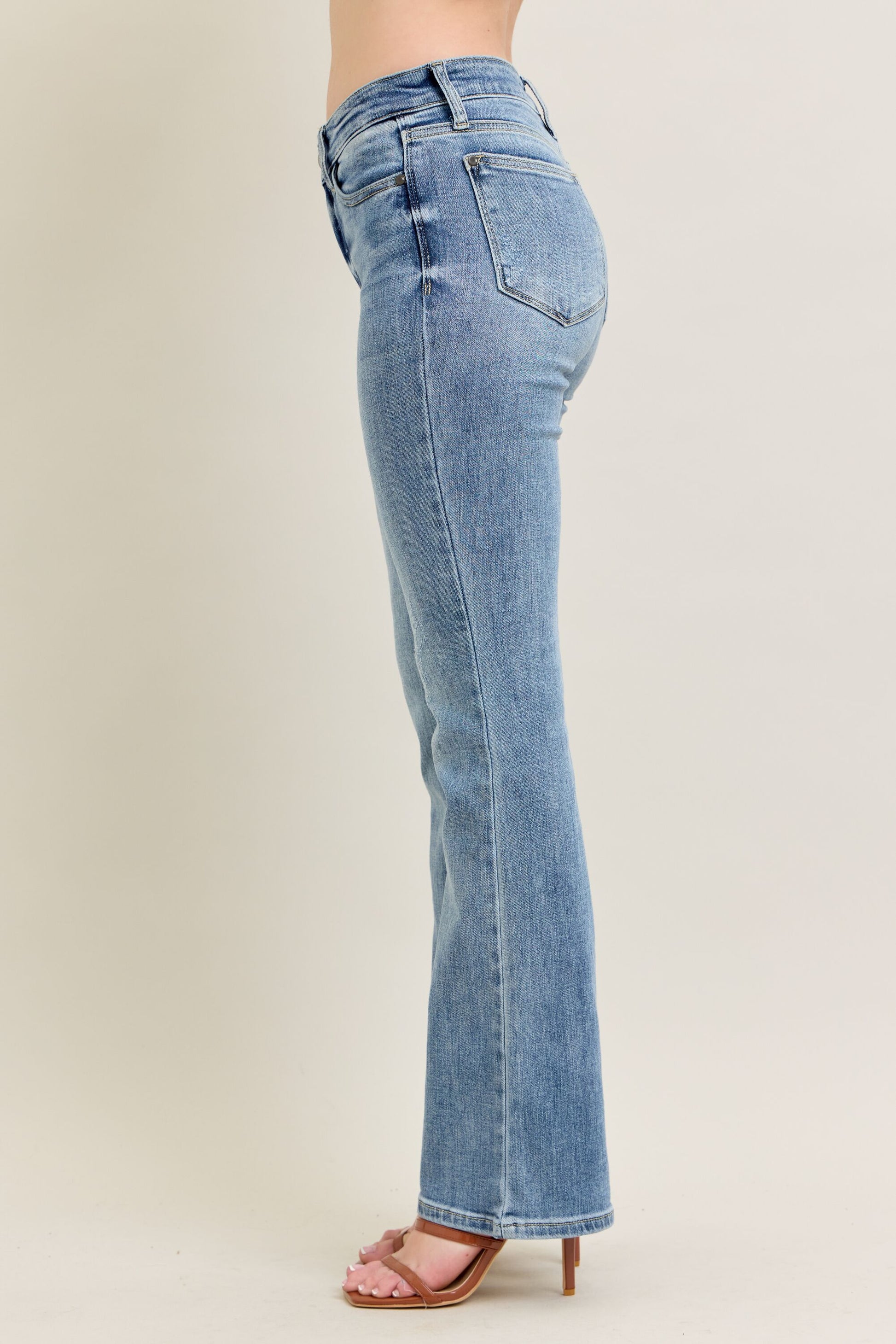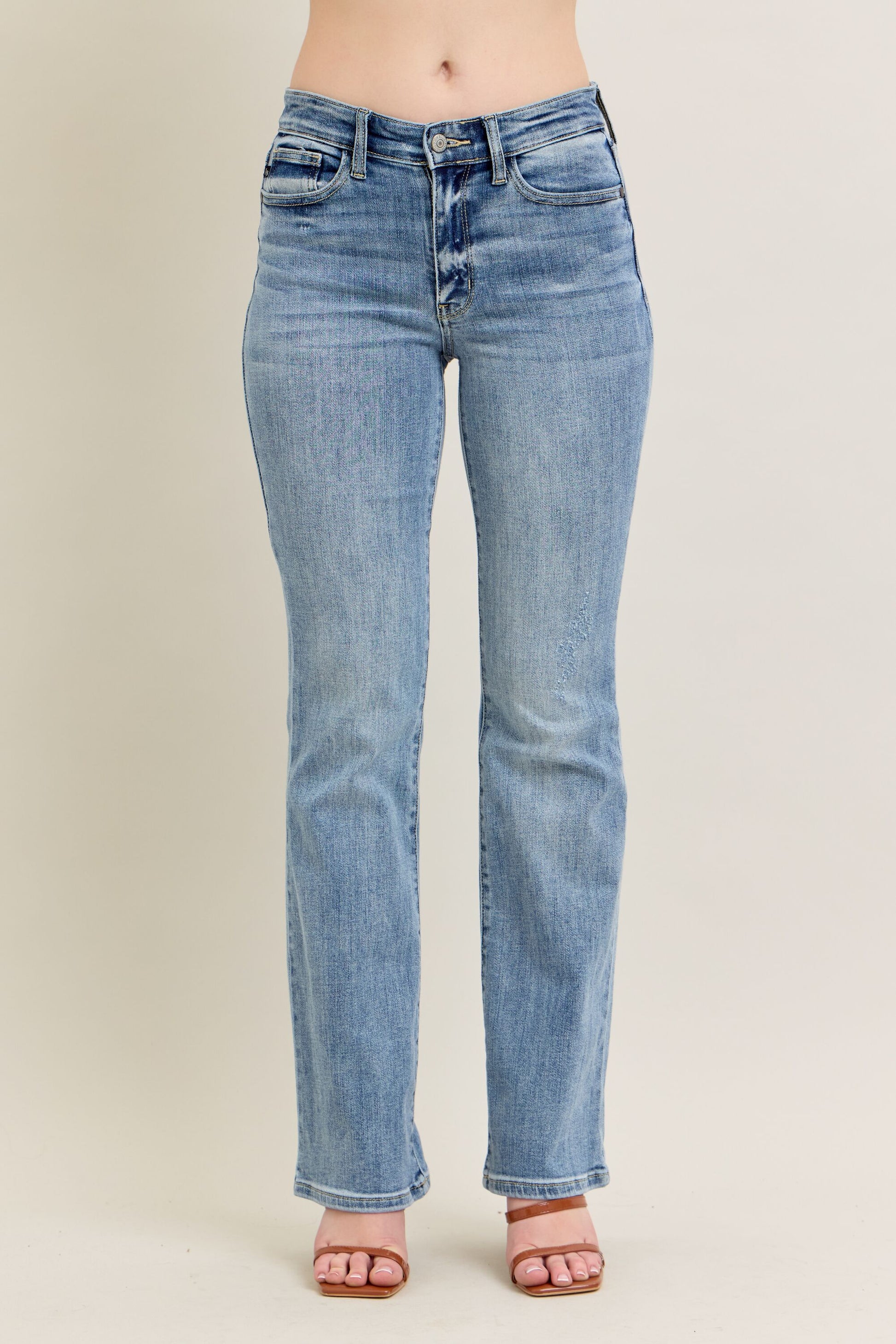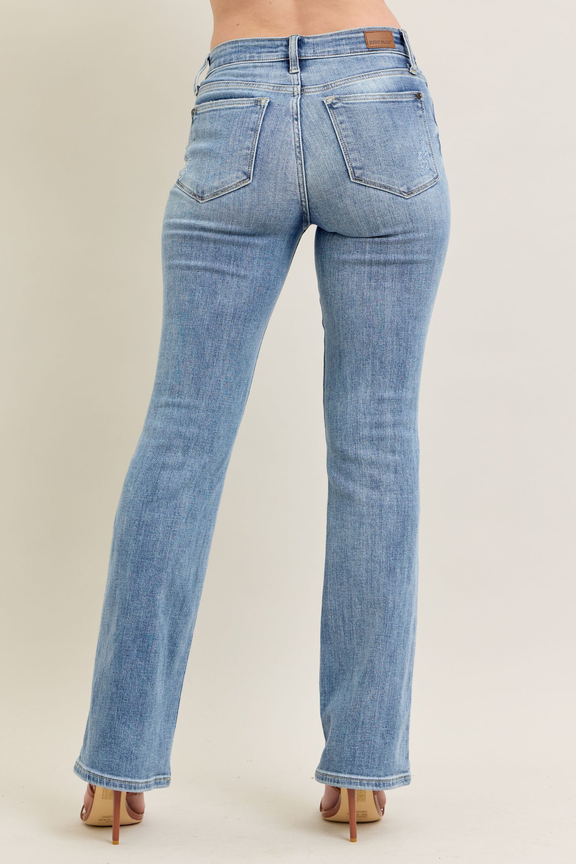 Add a playful pop to your denim lineup with the Core Mid Rise Bootcut jeans by Judy Blue. These light wash beauties offer a comfy mid-rise fit that hugs your curves just right while giving you freedom to move. The classic bootcut silhouette flares gently from the knee, creating a fun, flirty bounce with every step. Easy to style with everything from casual tees to chic blouses, these Judy Blue jeans will quickly become your go to for effortless, confident looks that keep you smiling all day long.