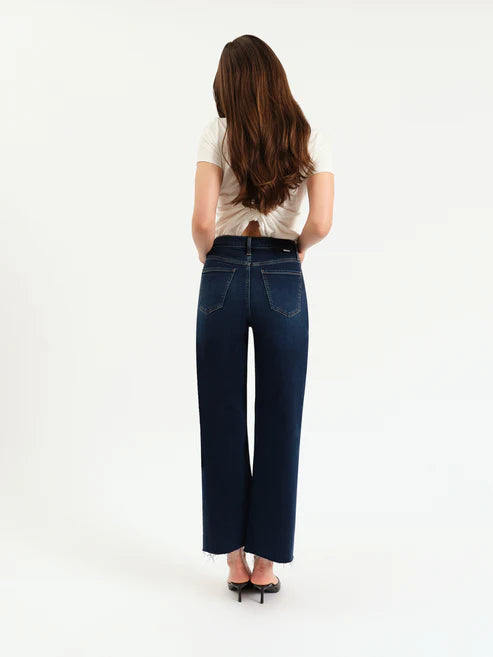 The Pleaser in Magic Hour by Daze Denim is a tried and true high rise wide ankle in a rich indigo. Constructed from our Hug fabric, this jean is flexible enough to hug your body, yet heavy enough to cinch you in.