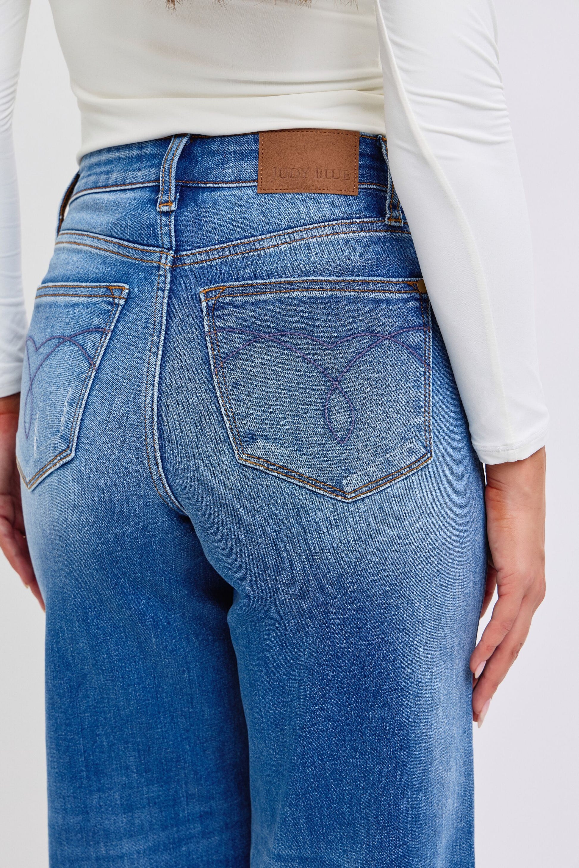 Add a splash of retro flair to your wardrobe with the Judy Blue Retro Wide Leg Cuff jeans. These high-rise jeans highlight your waist while offering a trendy wide-leg cut that flows effortlessly with every step. The playful cuff detail adds a touch of personality, and the minimal distressing keeps the look fresh and versatile. Perfect for mixing and matching with your favorite tops and shoes, these jeans blend vintage vibes with modern comfort, making them a fun and stylish choice for any occasion.