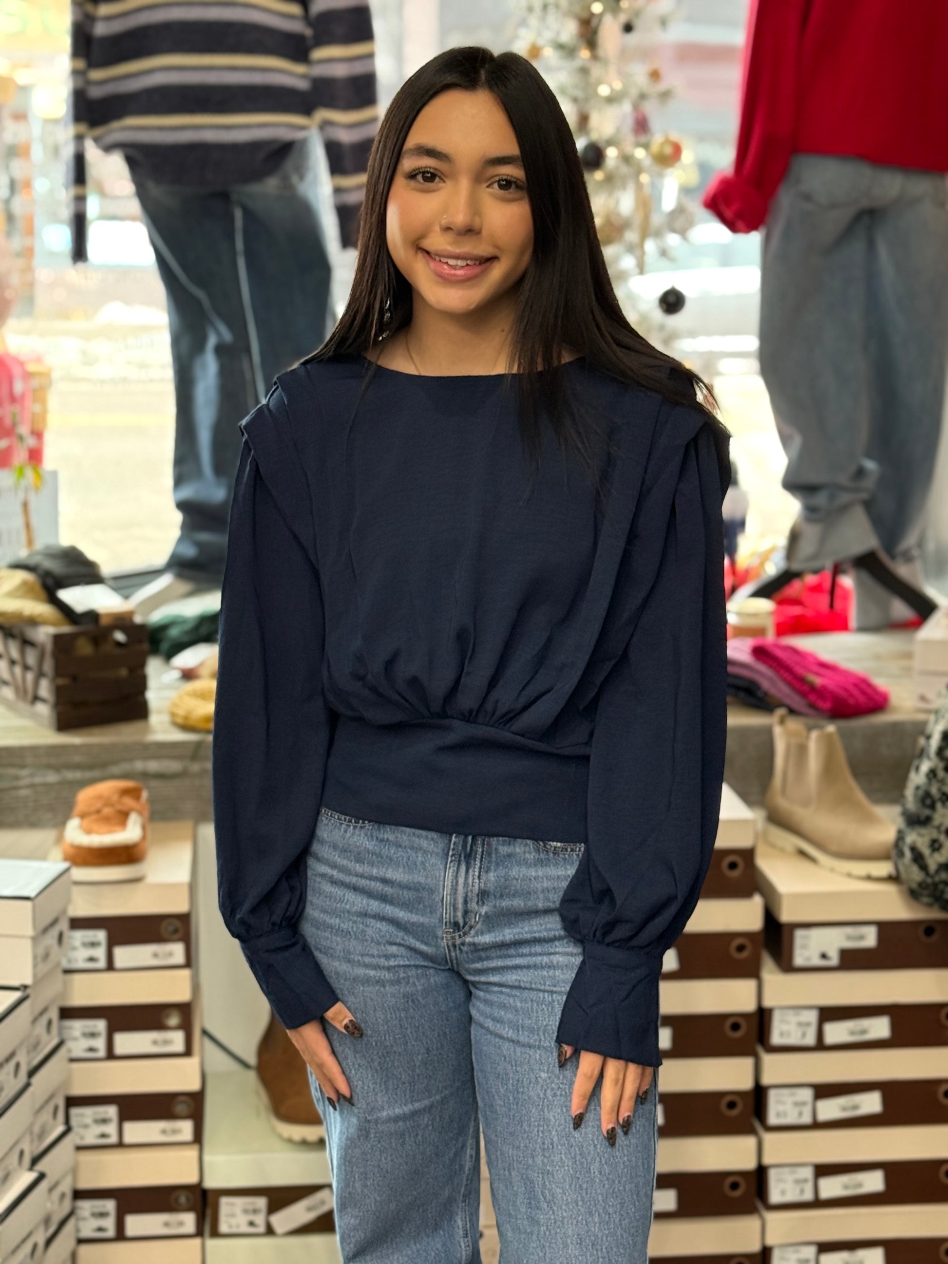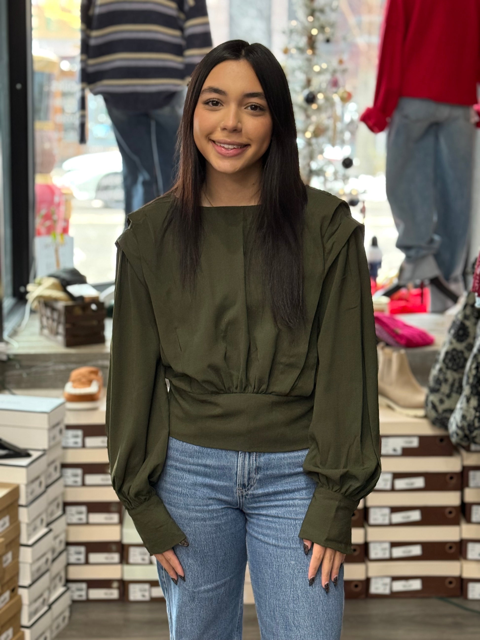 Elevate your wardrobe with this show-stopping dressy top that brings effortless sophistication to any occasion. The charming balloon sleeves add a touch of whimsy and movement, while the structured thick band hem cinches at the waist for a flattering silhouette that'll have you feeling fabulous. Perfect for date nights, special events, or whenever you want to turn heads with polished, playful style. This piece strikes that sweet spot between dressy and fun, because who says elegant can't be a little flirty?