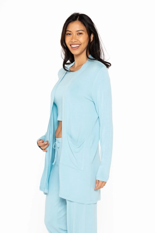 Cozy up in the Terry Cardigan, designed for maximum comfort and effortless style. This lightweight, long cardigan features a flattering drapey silhouette that makes it feel like a warm hug every time you slip it on. The adorable patch pockets add an extra touch of snugness, perfect for warming your hands or stashing small essentials. Whether you're relaxing on the couch with a good book, enjoying a lazy morning, or layering up for a casual outing, this playful cardigan brings warmth and charm to every cozy moment.
